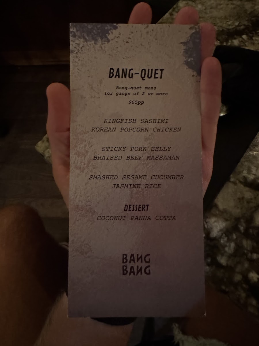 Bang Bang's Bang-quet set menu is a must-try, featuring thoughtful pairings like the flavorful bug buns and succulent beef rib, expertly crafted with delightful cocktails like the Yuzu Dragon. Patrons rave about the impeccable service and inviting atmosphere, making every visit memorable. Come savor the taste of Byron Bay at Bang Bang!
